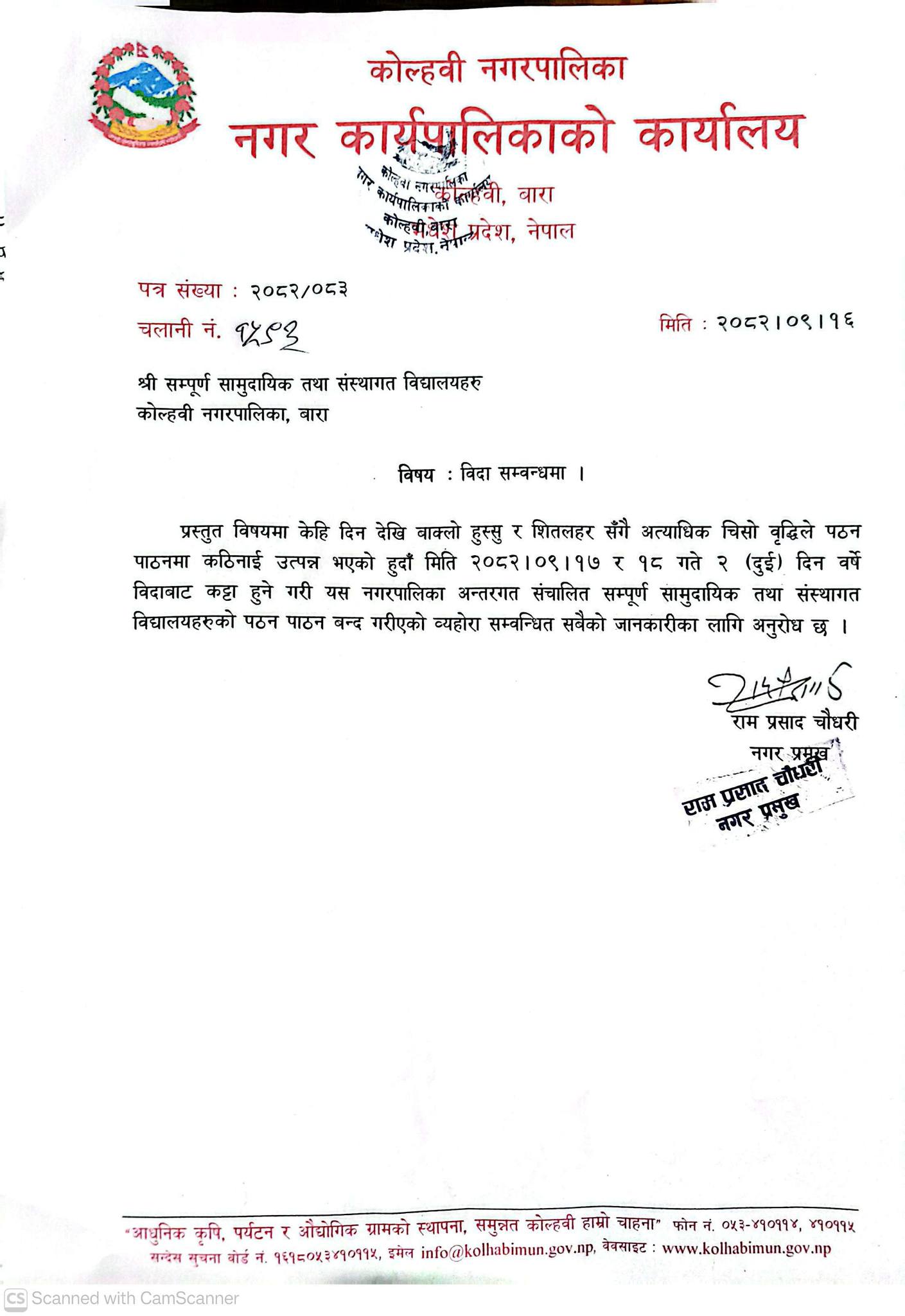 » विदा सम्बन्धमा, श्री सम्पूर्ण सामुदायिक तथा संस्थागत विद्यालयहरू