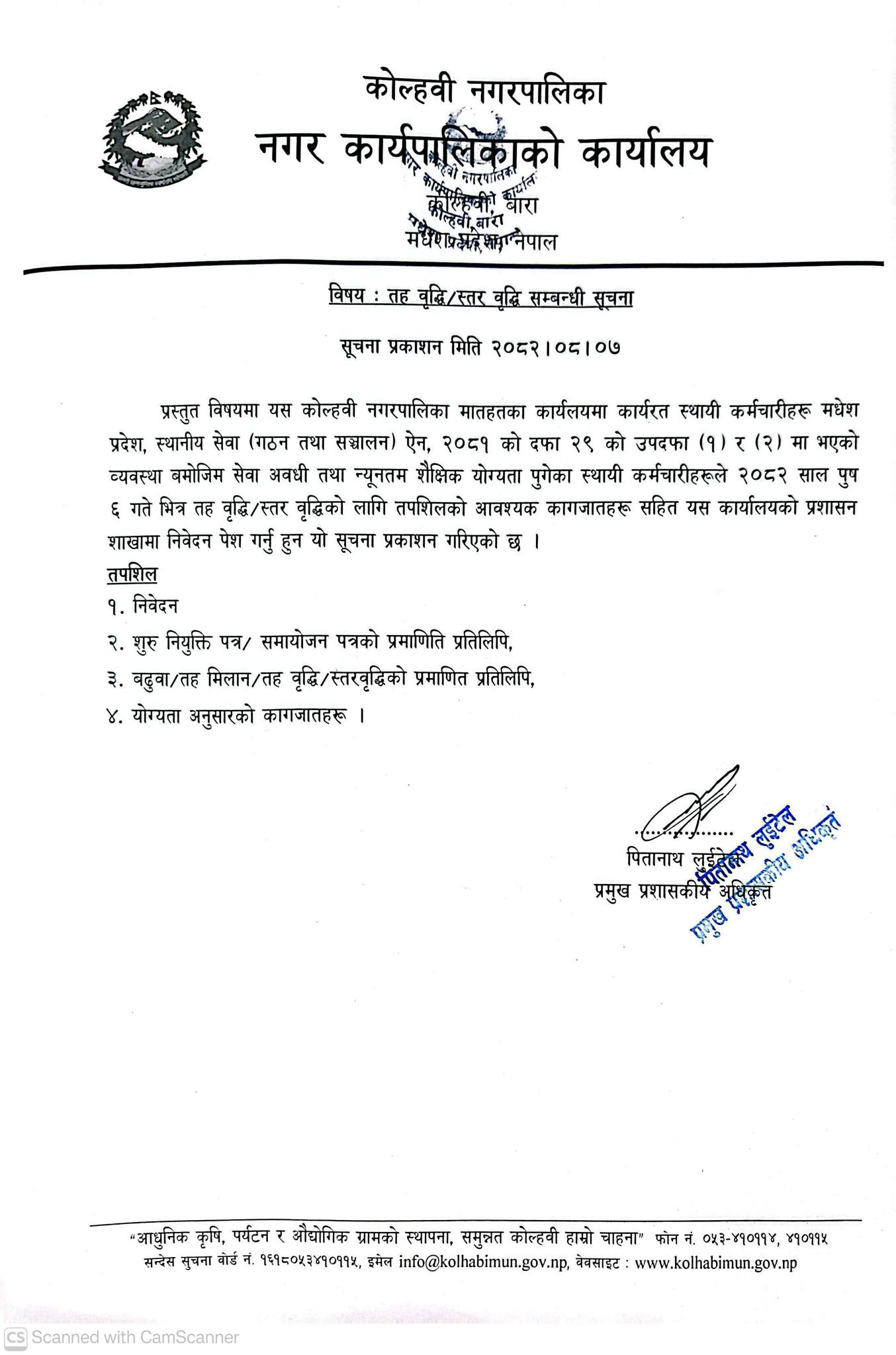 तह वृद्धि / स्तर वृद्धि सम्बन्धी सूचना।