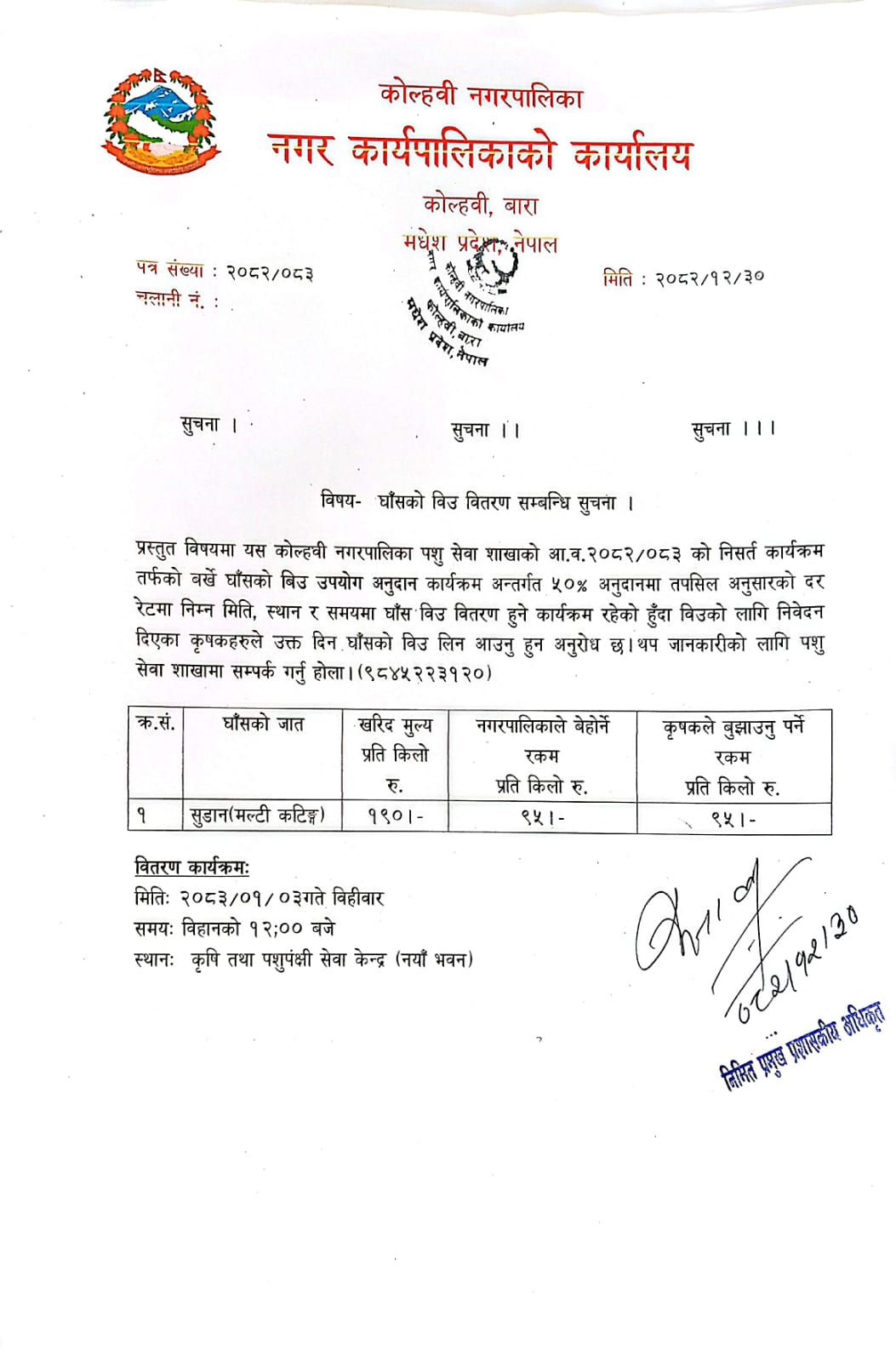 ५०% अनुदानमा उन्नत धान बिउ मागको लागि आवेदन दिने सम्बन्धी सूचना।
