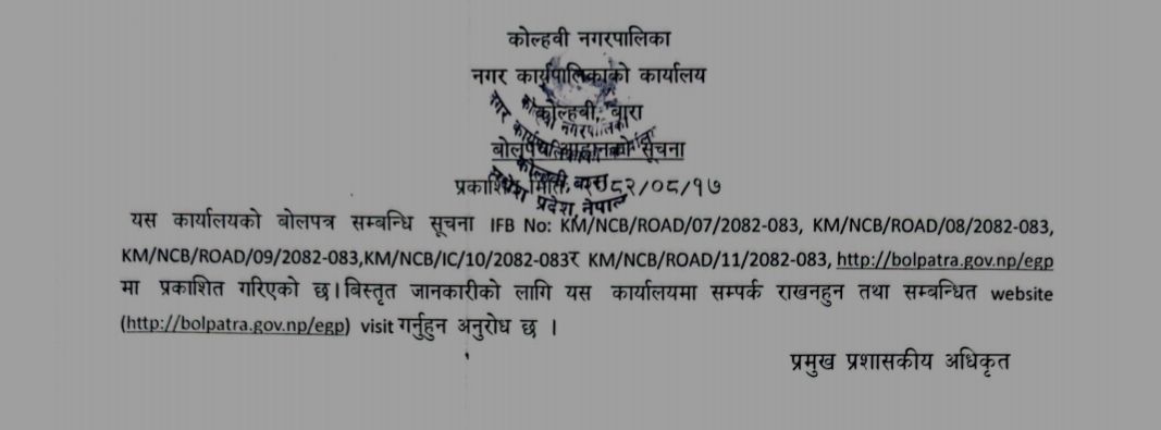 बोलपत्र आह्वान सम्बन्धी सूचना।