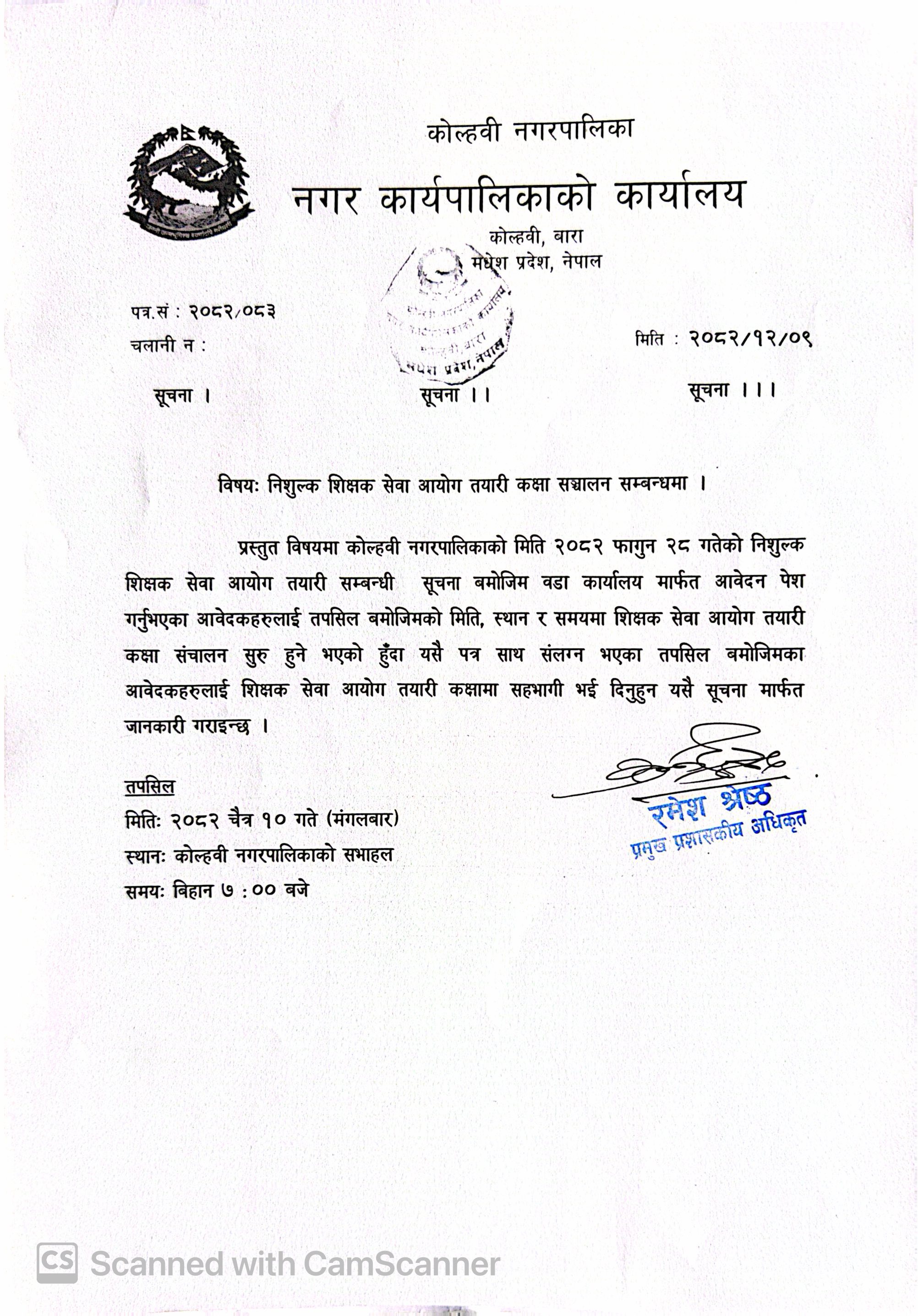 निःशुल्क शिक्षा सेवा आयोग तयारी कक्षा सञ्चालन सम्बन्धमा