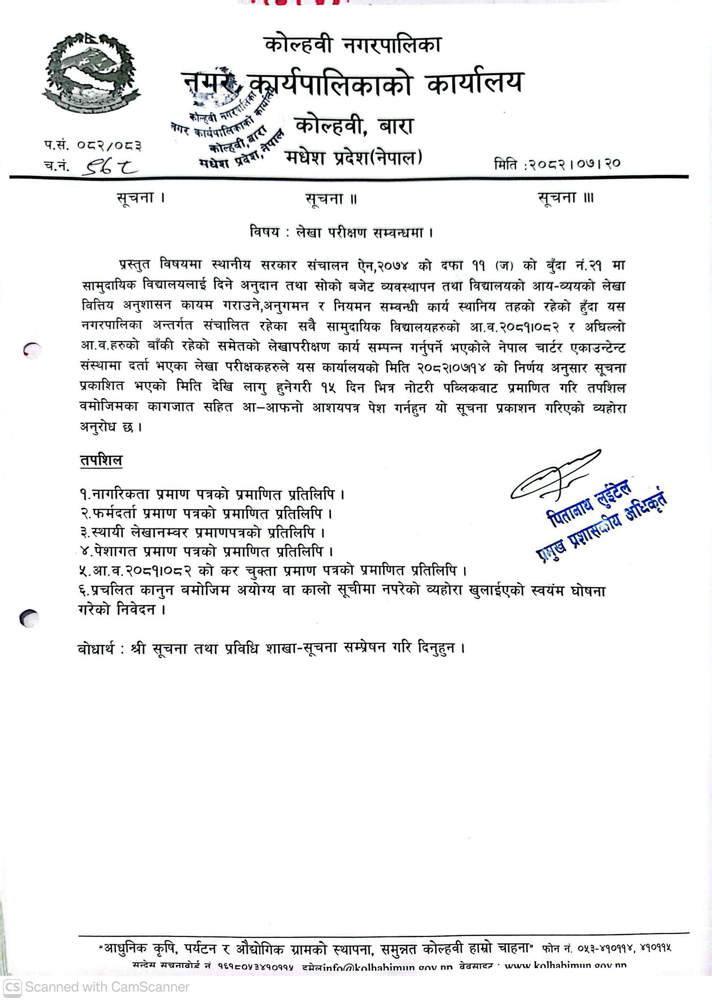 कोल्हवी नगरपालिकाको आ.व. २०७९/०८० को नीति तथा कार्यक्रम ,आर्थिक ऐेन, विनियोजन ऐेन तथा वडा स्तरिय योजना तथा बजेट